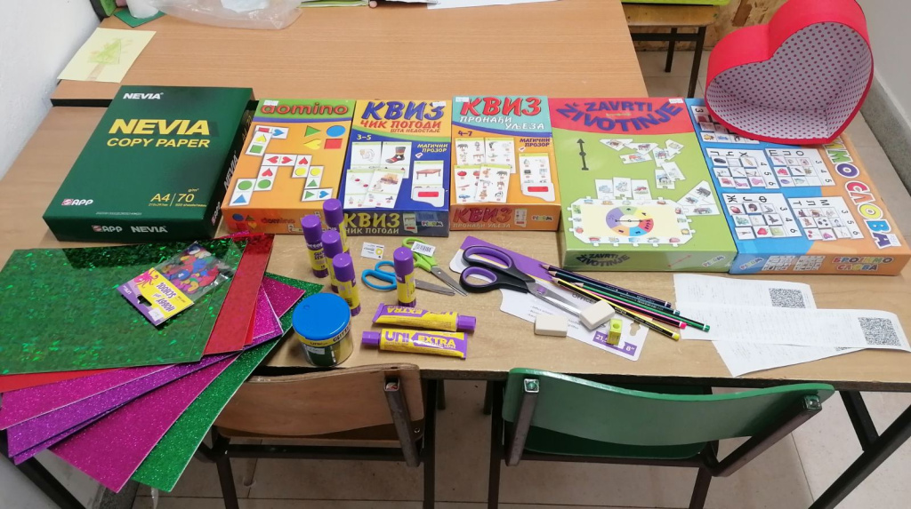 Деда Мразова радионица у додатној подршци у Меленцима је припремила новогодишње украсе и честитке.Помогли су им волонтери - другари из 3.,4.,5. и 6. разреда, да заврше и све то да припреме за продају.Од сакупљеног новца ће купити друштвену игру и материјал за нове креативне подухвате.