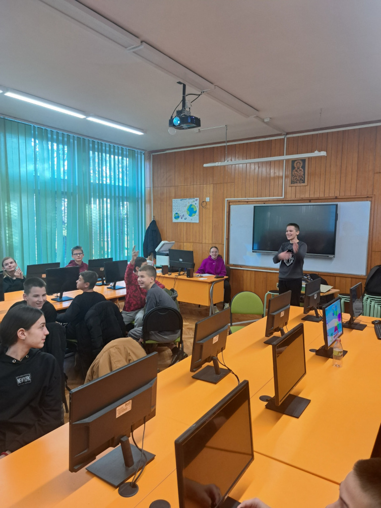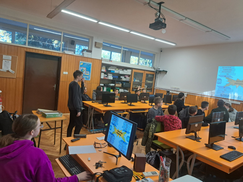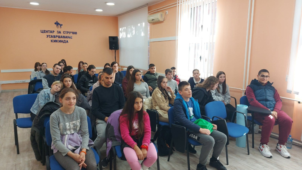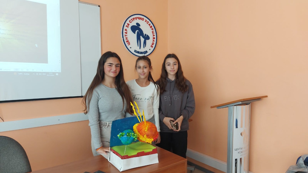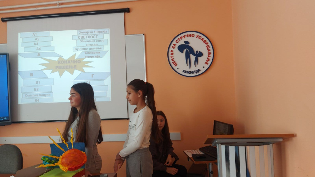 У суботу, 26. 10. 2024. ученици наше школе посетили су Центар за стручно усавршавање у Кикинди и промовисали своје радове у оквиру пројекта Центра за промоцију науке ,,Од фотона до електрона". Нашу школу представљала су три тима. Први тим: Емилија и Василије Велемиров, други тим: Милица Барој, Тијана Кемера и Ина Станојевић, трећи тим: Марија Берар, Катарина Мијатов и Ђорђе Марков. Ментор: Сања Рацков. У пројекту су учествовали и ученици Средње економско-трговинске школе из Кикинде и Карловачке гимназије из Сремских Карловаца. Своје другарице и другове подржали су ученици ВИИ-2 у оквиру слободне наставне активности Предузетништво. Сви ученици имали су прилику да се упознају са соларном енергијом и алтернативним изворима енергије кроз занимљиве и креативне радове ученика.