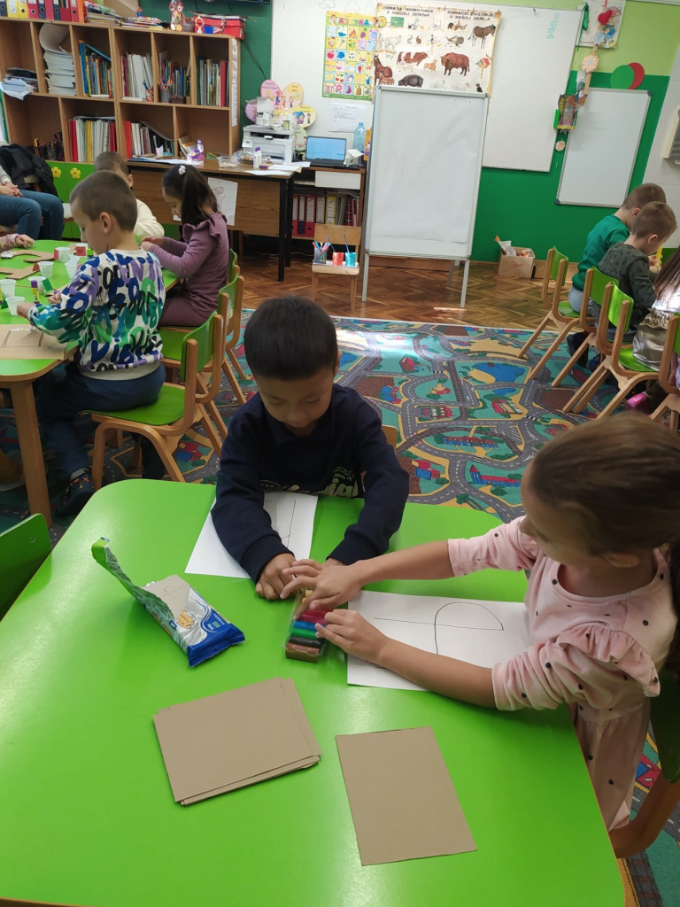 Посете психолога и педагога предшколско припремним групама васпитачица Мирославе Илић и Дајане Куручев Мудрић Васпитачице су  приступом учења кроз игру максимално заокупиле пажњу предшколаца. Деца су имала могућност да бирају материјал за рад, а креативно вођење васпитачица их је довело до занимљивих резултата.