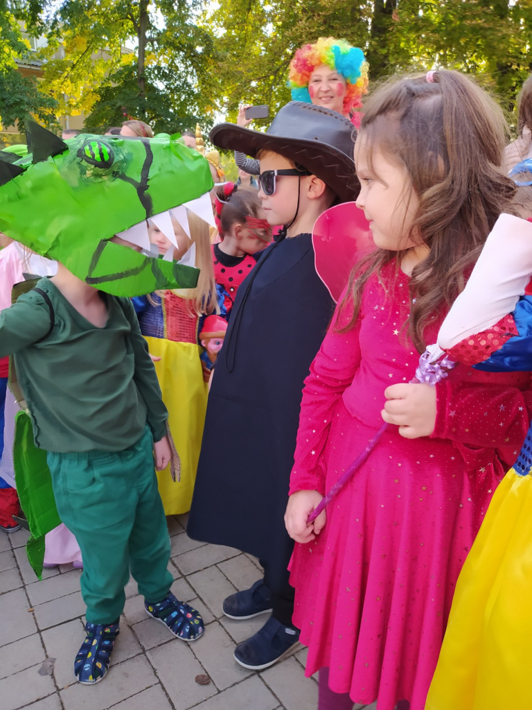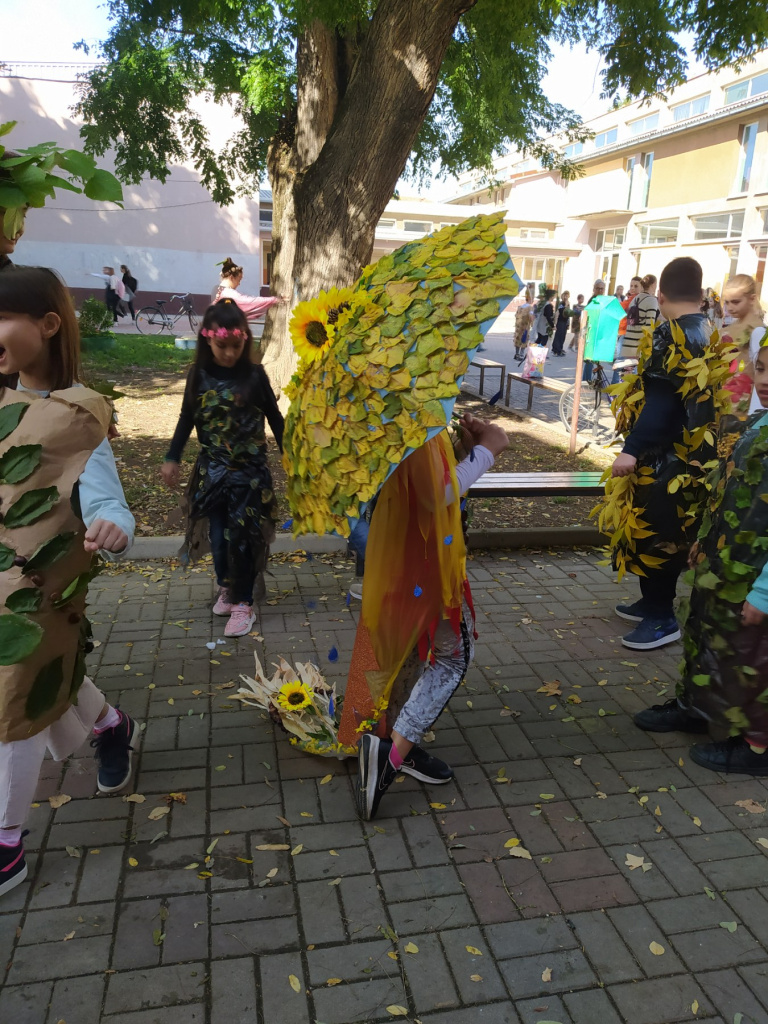 Школско двориште је оживело од шарених змајева ученика 3. разреда и предивних јесењих костима четвртака. Жири је у оба случаја имао леп, али тежак посао.