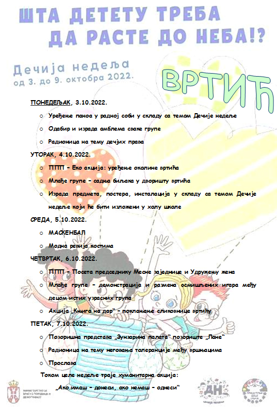 Била је Дечија недеља и пуно занимљивих и лепих сличица оставила за собом, као и маштовитих, необичних назива одељења.