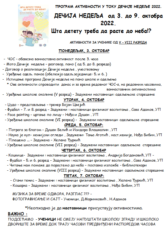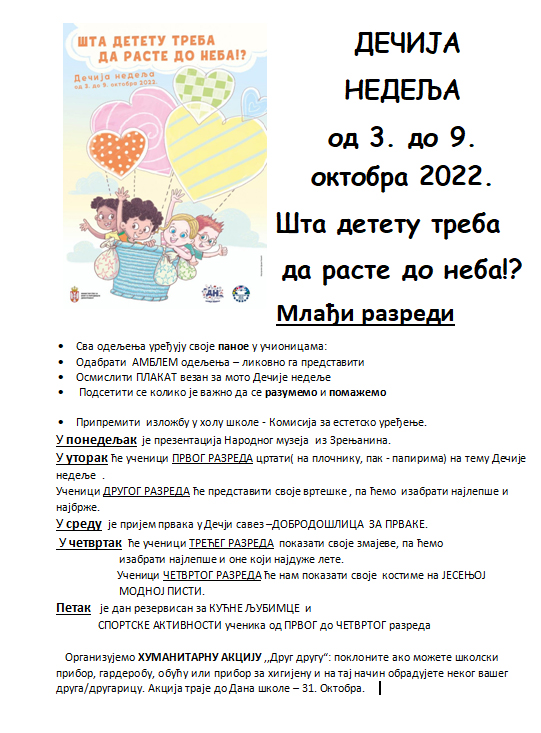 Дечија недеља је почела у понедељак и пуно лепих активности су освежиле школске дане: ЧОС , панои, фудбал, плес, хемијски огледи, цртање лица (face painting ), приредба за прваке, музеј у школи, музика... DN22.1 viber_slika_2022-10-05_22-38-16-175.jpg viber_slika_2022-10-05_22-38-16-338.jpg viber_slika_2022-10-05_22-38-16-451.jpg viber_slika_2022-10-05_22-38-16-563.jpg viber_slika_2022-10-05_22-38-16-761.jpg viber_slika_2022-10-05_22-38-16-886.jpg viber_slika_2022-10-05_22-38-17-810.jpg viber_slika_2022-10-05_22-38-18-074.jpg viber_slika_2022-10-05_22-38-28-174.jpg viber_slika_2022-10-05_22-38-31-313.jpg viber_slika_2022-10-05_22-38-31-586.jpg viber_slika_2022-10-05_22-38-31-809.jpg viber_slika_2022-10-05_22-38-32-135.jpg viber_slika_2022-10-05_22-38-32-907.jpg viber_slika_2022-10-05_22-38-34-605.jpg viber_slika_2022-10-05_22-38-34-777.jpg viber_slika_2022-10-05_22-38-35-226.jpg viber_slika_2022-10-05_22-38-35-829.jpg viber_slika_2022-10-05_22-38-52-497.jpg DN22.2 viber_slika_2022-10-06_22-20-48-841.jpg viber_slika_2022-10-06_22-20-48-945.jpg viber_slika_2022-10-06_22-20-49-674.jpg viber_slika_2022-10-06_22-20-53-651.jpg viber_slika_2022-10-06_22-20-54-498.jpg viber_slika_2022-10-06_22-23-11-392.jpg DN22.3 viber_slika_2022-10-06_22-29-04-926.jpg viber_slika_2022-10-06_22-29-08-969.jpg viber_slika_2022-10-06_22-29-12-136.jpg viber_slika_2022-10-06_22-29-17-621.jpg viber_slika_2022-10-06_22-29-18-174.jpg viber_slika_2022-10-06_22-29-18-735.jpg viber_slika_2022-10-06_22-29-18-899.jpg viber_slika_2022-10-06_22-29-19-052.jpg viber_slika_2022-10-06_22-29-19-582.jpg DN22.4 viber_slika_2022-10-06_22-37-10-780.jpg viber_slika_2022-10-06_22-37-10-882.jpg viber_slika_2022-10-06_22-37-11-061.jpg viber_slika_2022-10-06_22-37-11-173.jpg viber_slika_2022-10-06_22-37-11-263.jpg viber_slika_2022-10-06_22-37-11-352.jpg viber_slika_2022-10-06_22-37-11-665.jpg viber_slika_2022-10-06_22-37-11-807.jpg viber_slika_2022-10-06_22-37-11-932.jpg viber_slika_2022-10-06_22-37-14-013.jpg viber_slika_2022-10-06_22-39-01-355.jpg viber_slika_2022-10-06_22-39-01-547.jpg viber_slika_2022-10-06_22-39-01-713.jpg viber_slika_2022-10-06_22-39-01-953.jpg viber_slika_2022-10-06_22-39-02-124.jpg viber_slika_2022-10-06_22-39-02-301.jpg viber_slika_2022-10-06_22-40-23-560.jpg viber_slika_2022-10-06_22-48-59-064.jpg viber_slika_2022-10-06_22-49-01-503.jpg viber_slika_2022-10-06_22-55-36-245.jpg DN22.5 viber_slika_2022-10-06_23-04-36-349.jpg viber_slika_2022-10-06_23-04-36-863.jpg viber_slika_2022-10-06_23-04-37-339.jpg viber_slika_2022-10-06_23-04-37-764.jpg viber_slika_2022-10-06_23-05-58-815.jpg viber_slika_2022-10-06_23-05-59-367.jpg viber_slika_2022-10-06_23-05-59-895.jpg viber_slika_2022-10-06_23-06-00-413.jpg DN22.6 viber_slika_2022-10-07_14-14-49-142.jpg viber_slika_2022-10-07_14-14-49-590.jpg viber_slika_2022-10-07_14-14-51-335.jpg viber_slika_2022-10-07_14-14-51-828.jpg viber_slika_2022-10-07_14-14-52-343.jpg viber_slika_2022-10-07_14-14-52-833.jpg viber_slika_2022-10-07_14-14-53-480.jpg viber_slika_2022-10-07_14-14-54-003.jpg viber_slika_2022-10-07_15-33-37-644.jpg viber_slika_2022-10-07_16-53-39-852.jpg viber_slika_2022-10-07_16-53-40-743.jpg