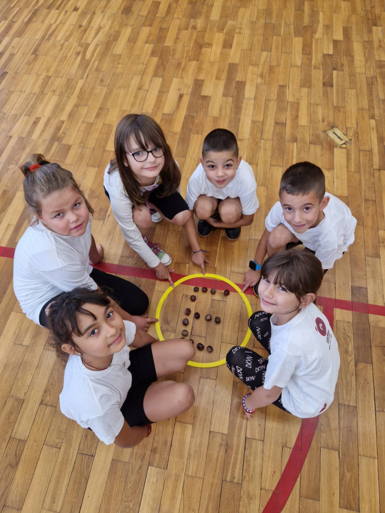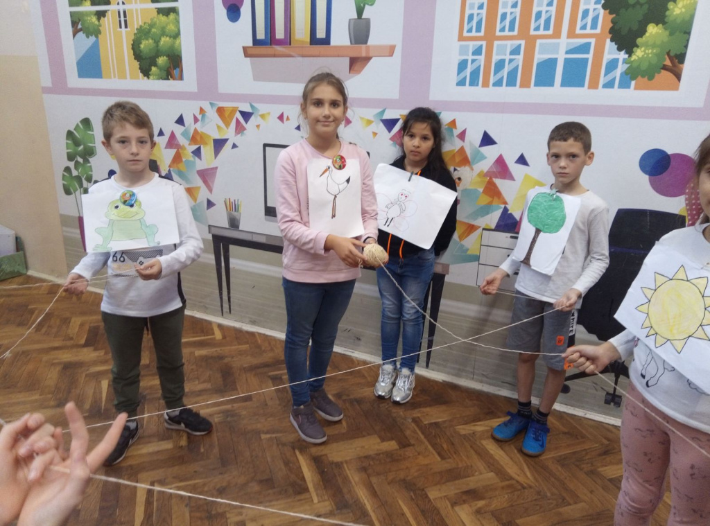 Ученици 2. разреда су користили природни материјал - кестен за исписивање слова, а трећи разред се играо игре Мрежа - добацивањем клупка од вуне повезивали су елементе неопходне за живот.