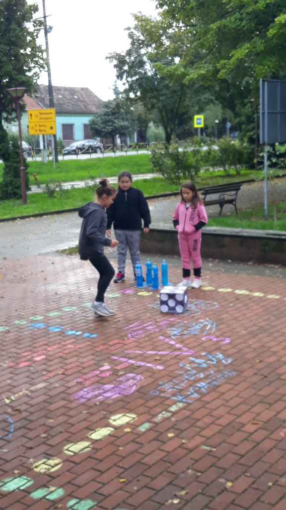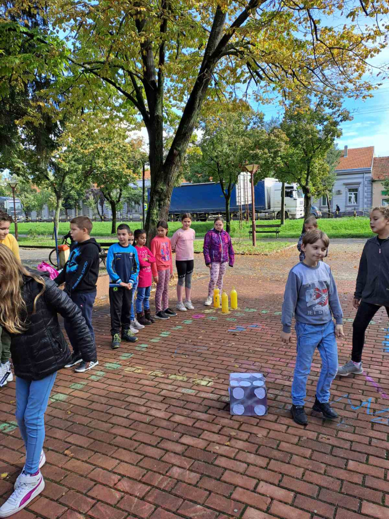 Ученици 4-1 и 4-3 су били врло креативни и еколошки усмерени: направили су еколошке реквизите за игру: Не љути се човече, а потом уживали у игри. Еколошка игра 4-2: убацивање крпењача у еколошке торбе.