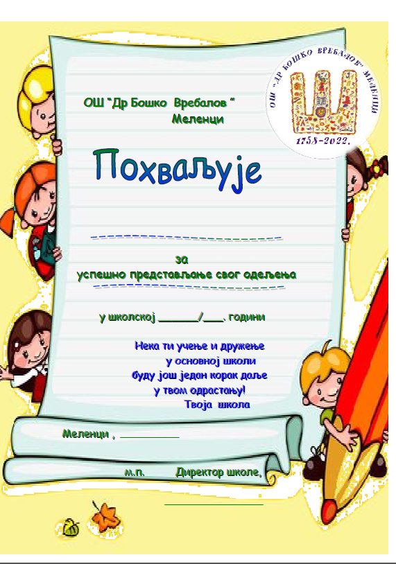 За врло успешно представљање свог одељења похваљујемо ученике: