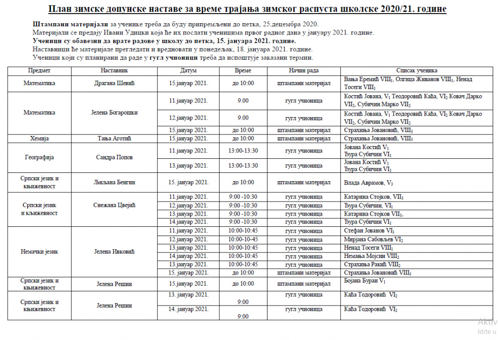 Гина Ђуркић VI-1, Николина Велемиров VII-1, Марија Ћурчић VII-1, Нађа Богарошки VI-1, Јована Мавренски VII-1, Катарина Имброњев VI-1, Мирка Вујанов VII-1, Горан Субић VII-1, Бранислав Мијатов VII-2, Ђорђе Путић VI-1 , Александар Рус VII-1, Милан Мијатов VI-1 и Јован Мијатов VII-1.