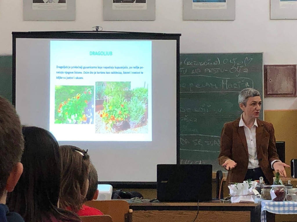 Ово предавање је било веома едукативно и ученици су развили интересовање о подизању свести о значају лековитог биља. У кратким цртама упознати су са узгојем и коришћењем лековитог биља у свакодневном животу. Професори су донели крајње производе лековитог и зачинског биља. Наша школа је позвана да узврати посету  и упозна се са практичним радом у био башти те ће та знања искористити у нашим условима где ћемо удружити рад еко биолога и предузетника.