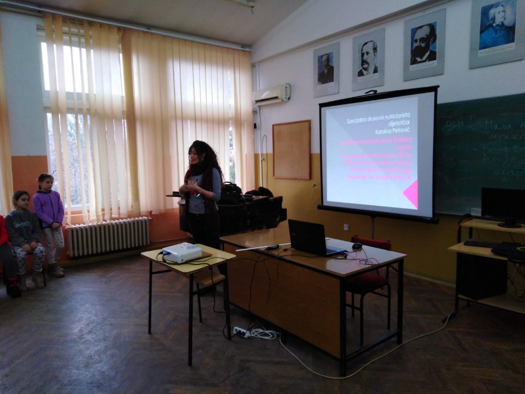 Данас, 5.фебруара 2020. смо се дружили са Каролином Петровић, нутриционискињом. Од ње смо научили које намирнице треба да једемо и у којој мери да бисмо правилно расли и развијали се.