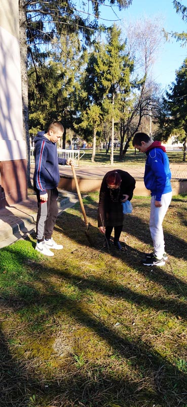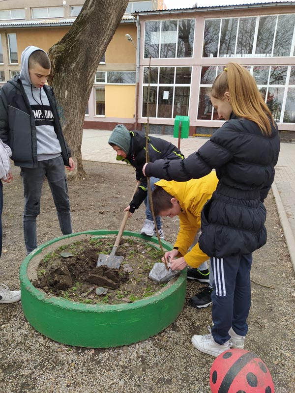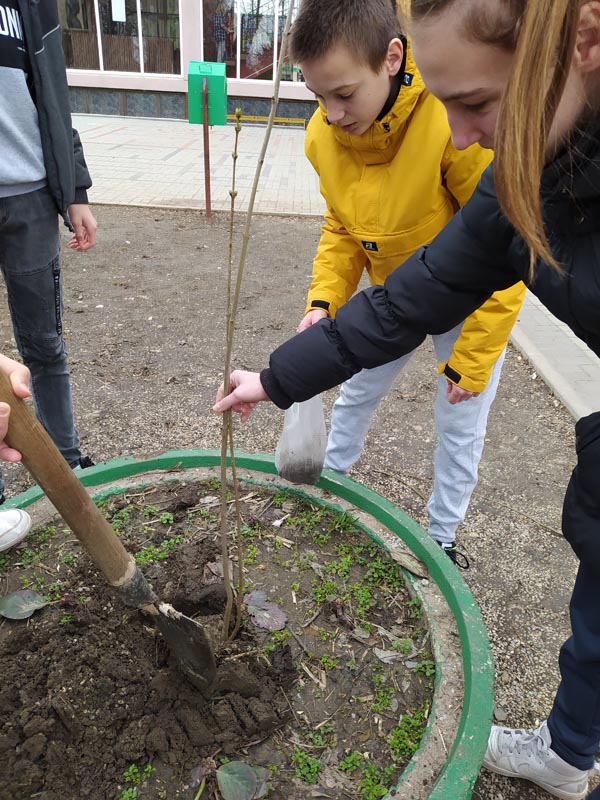 Представници Ученичког парламента су,  уз помоћ другара из разреда с ове лепе дане искористили да посаде саднице јоргована у околини школе. Кажу да је некада околина школе била личила на башту јоргована.