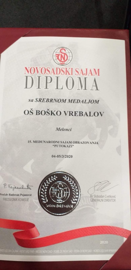 Дана 4.3.2020. године по званичном позиву присуствовали смо свечаној доделе признања на оцени квалитета у склопу 15. Међународног сајма образовања „Путокази“ на коме нам је уручена Диплома са сребрном медаљом.