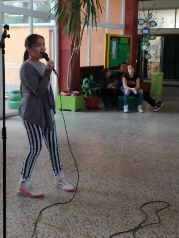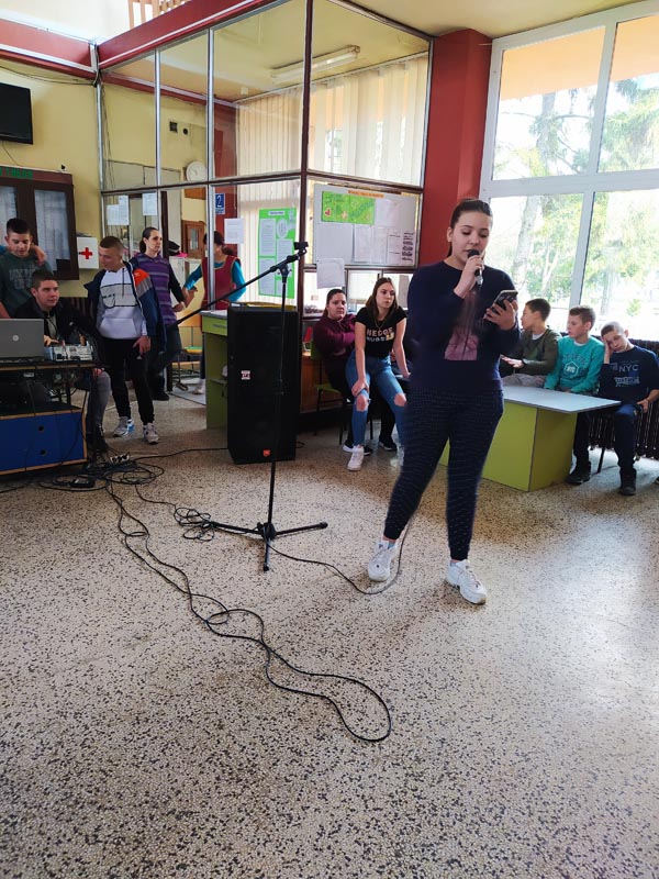 Топле ноте и пријатна атмосфера у холу школе захваљујући овим талентованим ученицима 6. разреда: Ивани, Милици и Ањи.