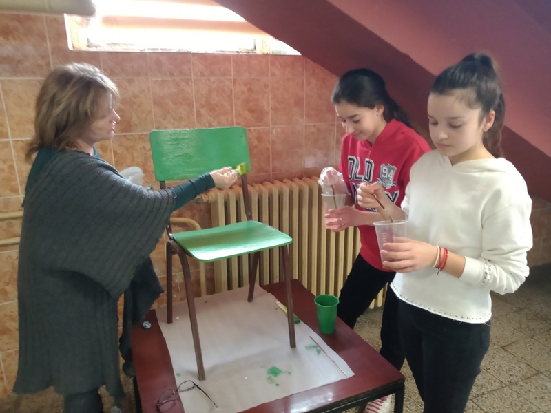 Ове недеље смо били корисни и креативни. Ученице 6-2 су рециклирале стари пано са називом школе, а представнице  Ученичког парламента и педагог су, заједно са другарима из 6. разреда и наставницима  додатне подршке рециклирали школске столице. Офарбали су старе школске и осликали на њима 4 годишња доба и на тај начин направили едукативно средсрво за ученике који имају додатну  подршку.