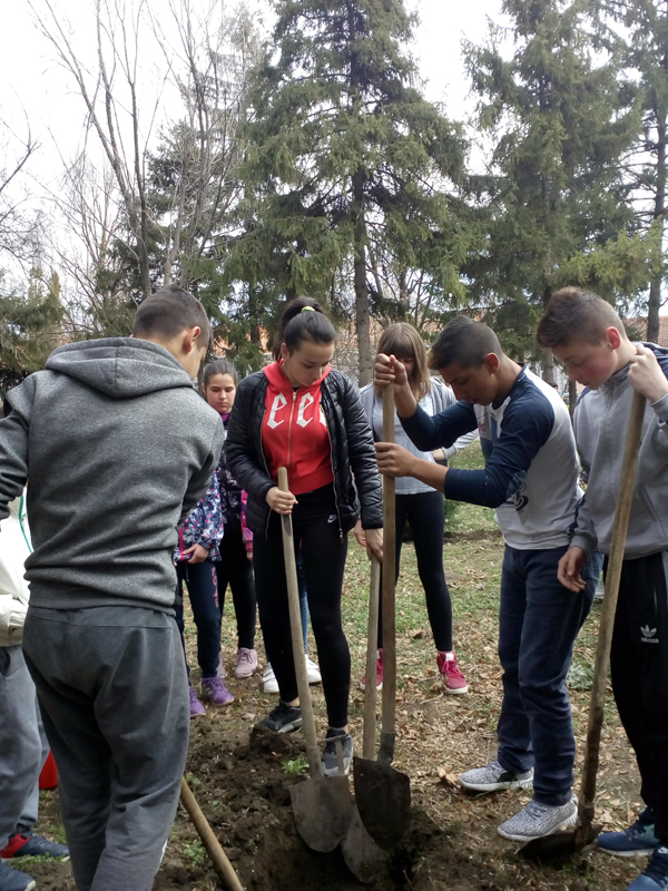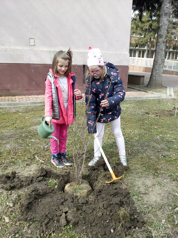 Пролеће нам стиже нешто пре поноћи 20. марта, а ми смо решили да га дочекамо и поздравимо садњом 15 садница које смо купили средствима добијеним на конкурсу Да се лакше дише а који је објавио ЗРЕПОК. Уз помоћ родитеља и ученика засадили смо саднице које ће неговати ученици 5. и 6. – чувари природе.