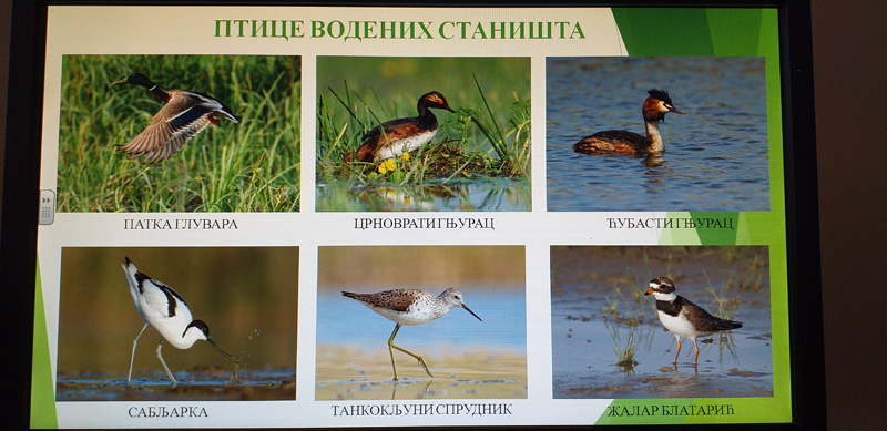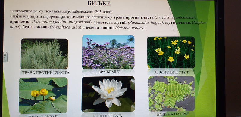 • интересантне податке о биљним и животињским врстама воденог станишта: ТИСКОМЦВЕТУ, ВИЛИНОМКОЊИЦУ, МРАВУ, БАРСКОЈ КОРЊАЧИ, РИБАРИЦИ, ЦРНОЈ РОДИ, СИВОЈ ЧАПЉИ, ЧАПЉИ КАШИКАРИ, ПАТКИ ГЛУВАРИ и многим другим представницима овог заштићеног краја.