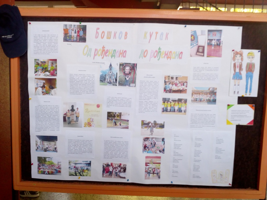 Ученици старијих разреда су заједно са наставницима уређивали школску околину, неки су били на проби хора а неки на драмској секцији. Ученици млађих разреда су такође бринули о животној околини, али тако што су донели стару хартију. Након акције прикупљања старе хартије, биле су трке у оквиру разреда, и тиме допринели  очувању свог здравља  и развијању такмичарског духа.