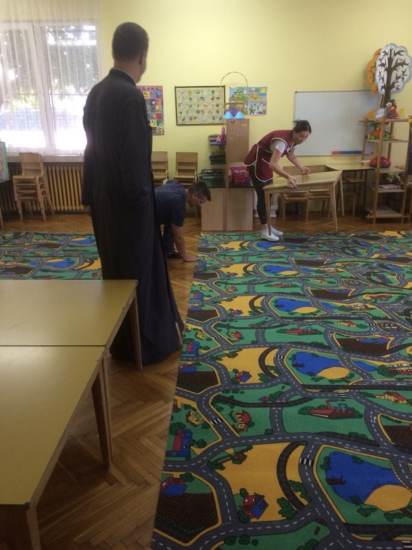 Вероучитељ Јован Веселинов у сарадњи са Робном кућом "Јована" обрадовао је децу вртића новим теписима.