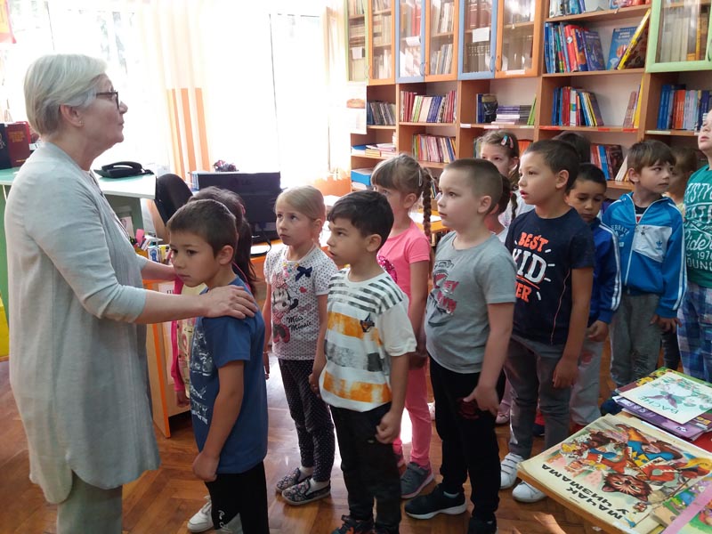 У среду 09.05. библиотекар Вера Попов одржала је угледну активност где је децу упознала са својим занимањем. Она је пре свега децу угостила у школској библиотеци, где су деца имала прилике да виде како она изгледа и колико књига има. Деца су била заинтересована, пажљиво су слушала, учествовала у разговору, постављала питања.