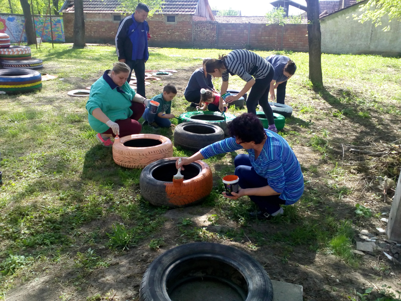 Погледајте шта све може кад се мали и велики сложе! Игралиште за предшколце и околина нашег вртића су  оживели у правом смислу речи. Заврнули су рукаве и узели ствар у своје руке: предшколци и њихови старији другари, родитељи, баке, деке, представници локалне заједници и сви људи добре воље и – ето места за играње, учење и уживање наших најмлађих.