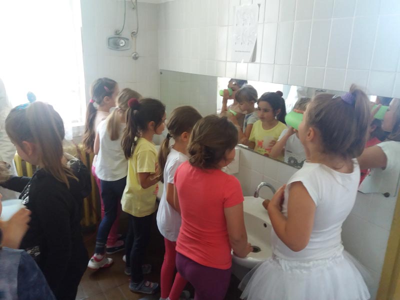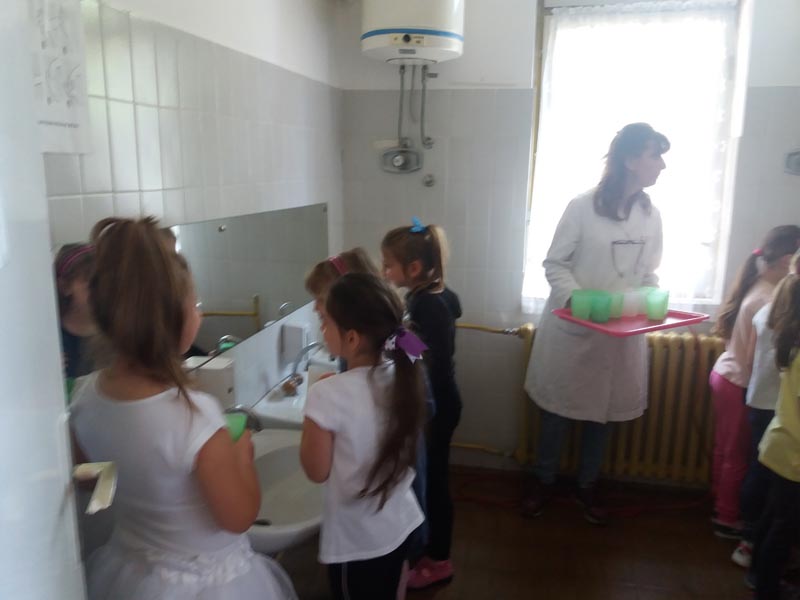 У уторак 08.05. у посету нам је била зубарка. Она је деци причала о хигијени зуба и како их сачувати од разних бактерија. Средством за испирање уста су се у вртицу изборили са бактеријама. Деца су утврдила и обновила знање.