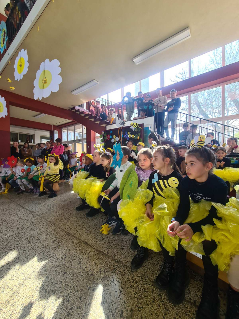 Данас смо дочекали пролеће, баш онако како се најлепше може описати пролеће - весело, срећно и мирисно, обојено највеселијим бојама. Дочекали смо и традиционално представнике манифестације „Пчела фест“. За креативни дочек били су задужени наши прваци и њихове учитељице Весна Протић, Оливера Булић и Данијела Војна. Највећа подршка учитељицама били су родитељи ученика, који су заједно са учитељицама уживели у осмесима и радости деце која су имала задатак да одглуме најважнију карику опстанка природе, а то су пчеле. Посебно захваљујемо Ибоји Мургул, мајци наше ученице, на несебичној помоћи и труду.