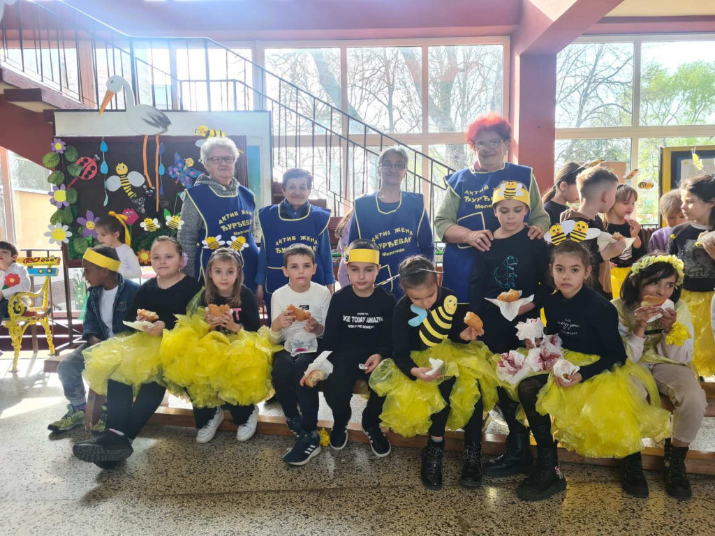 Све се завршило веома слатко јер се актиж жена „Ђурђевак“ за то правовремено потрудио и за све ученике обезбедиле укусне крофне које су малишани појели уз сласт јер су биле заслађене природним медом. Овом приликом захваљујемо активу „Ђурђевак“, а пчеларима ХВАЛА, јер су и обе године нашу најмлађу генерацију ученика научили много о пчелама и меду. Хвала и свим ученицима млађих разреда, као и њиховим учитељима који су најмлађе подржали великим аплаузом.