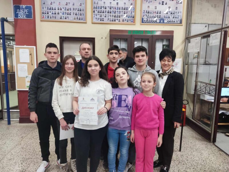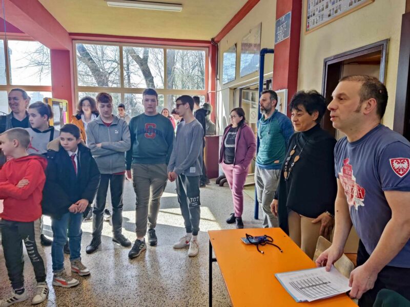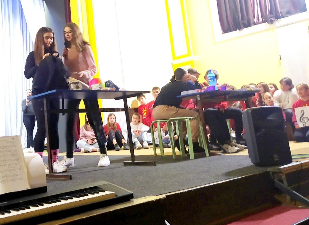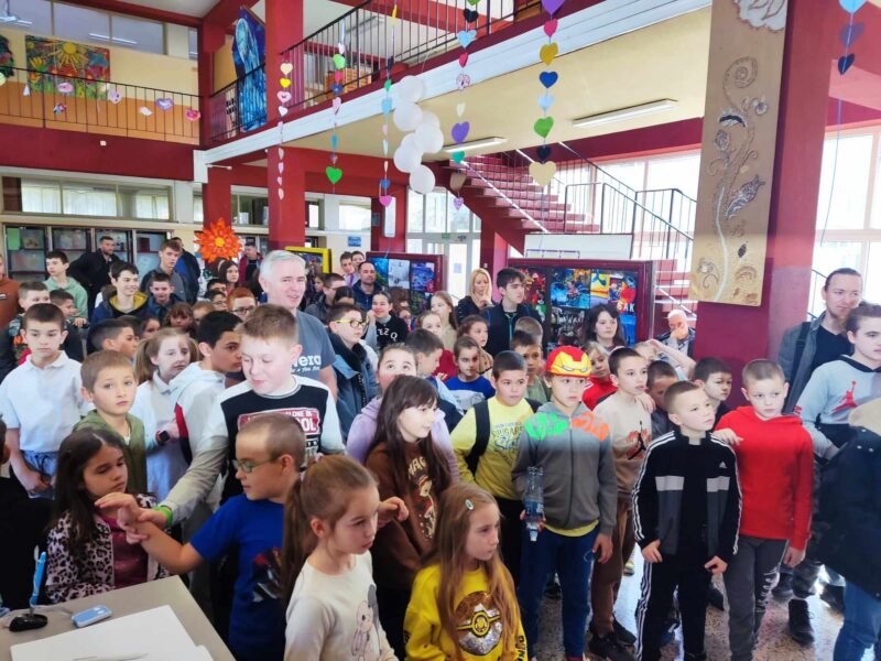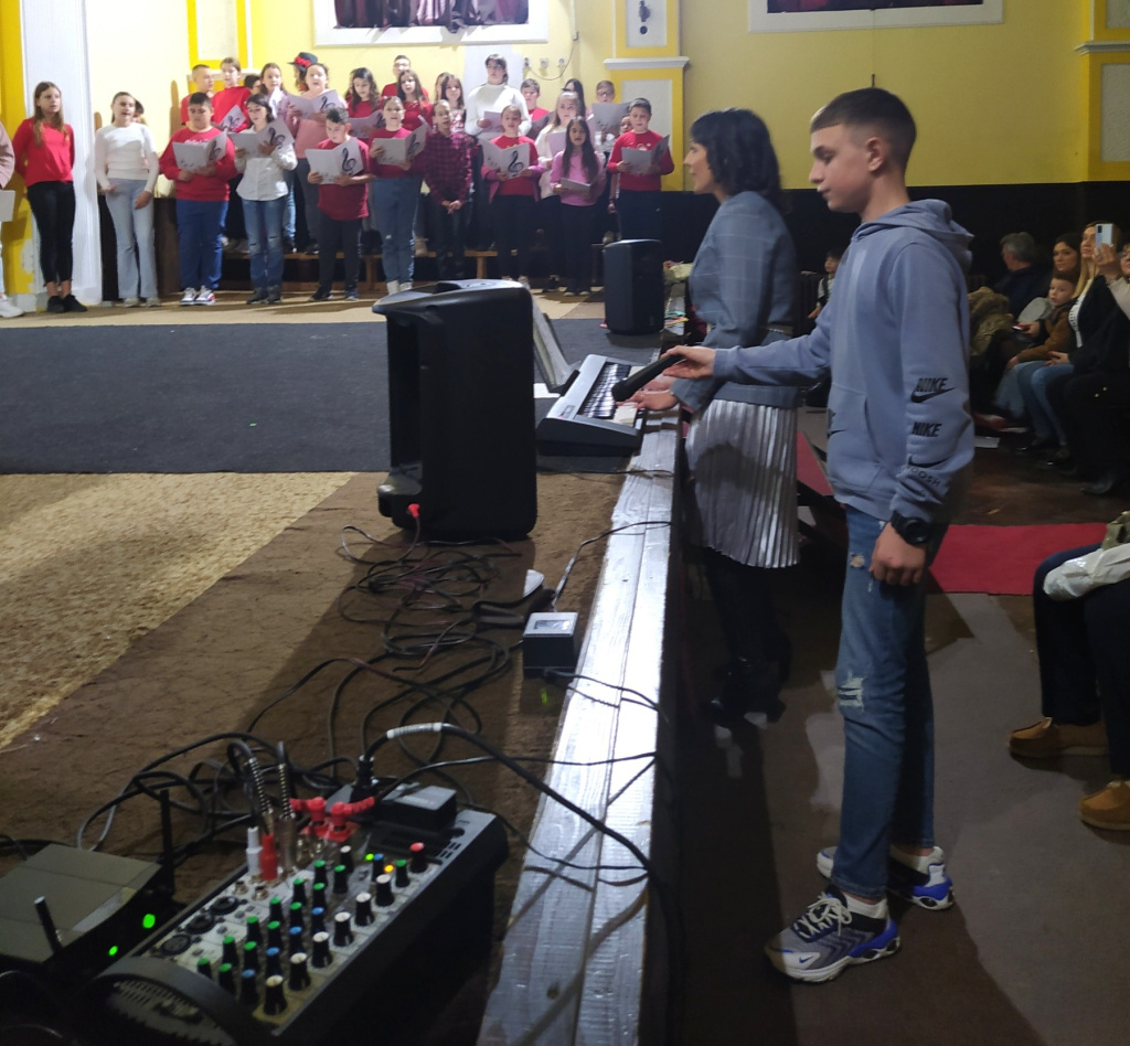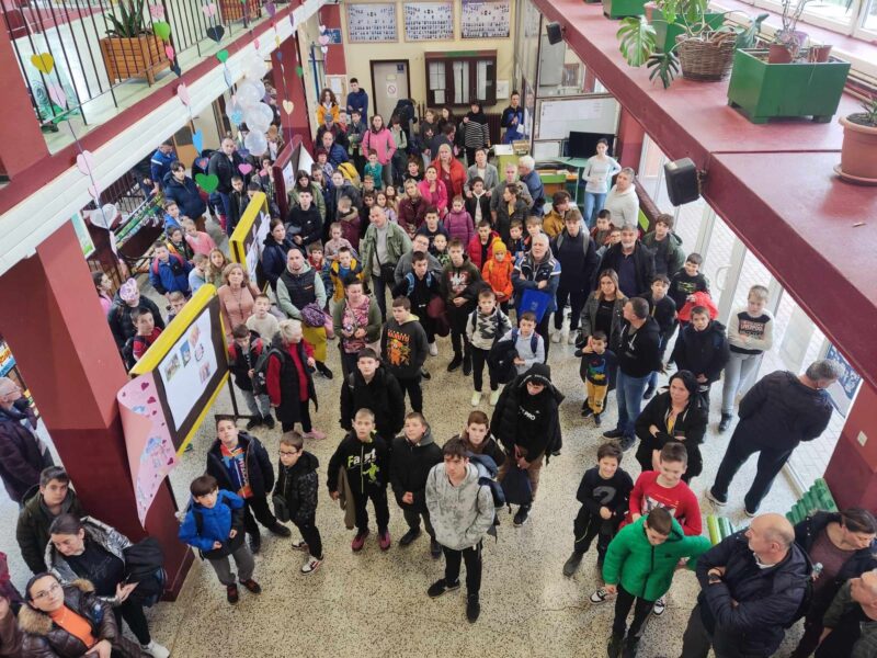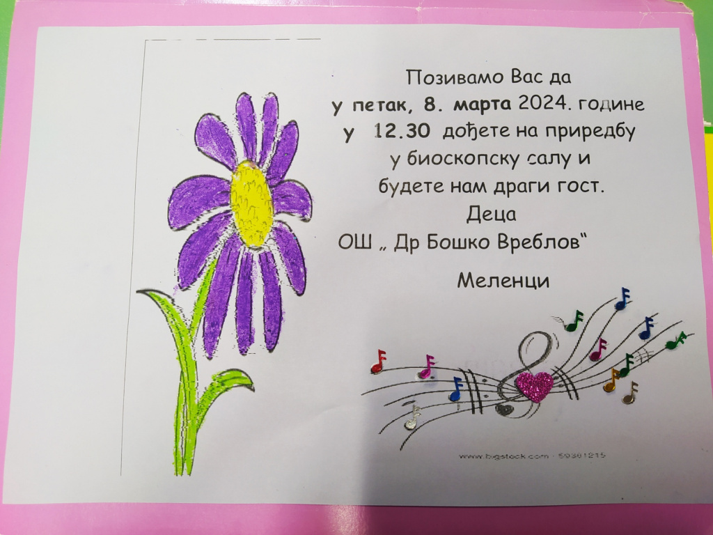 Ученици из подршке у Меленцима дају свој допринос на школској приредби, делећи цветове мамама, дамама, другарицама и наставницама.