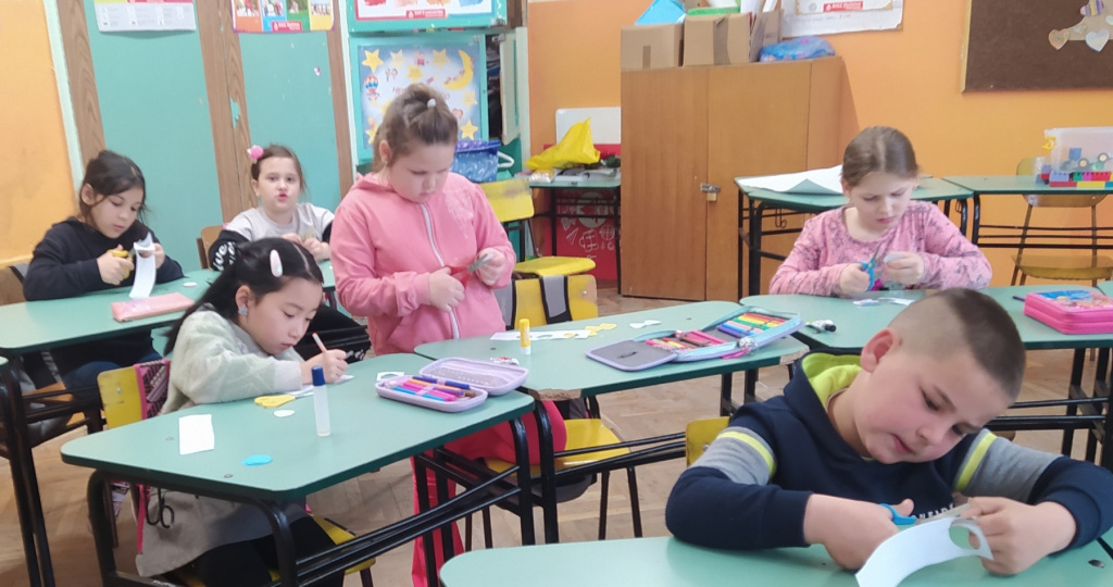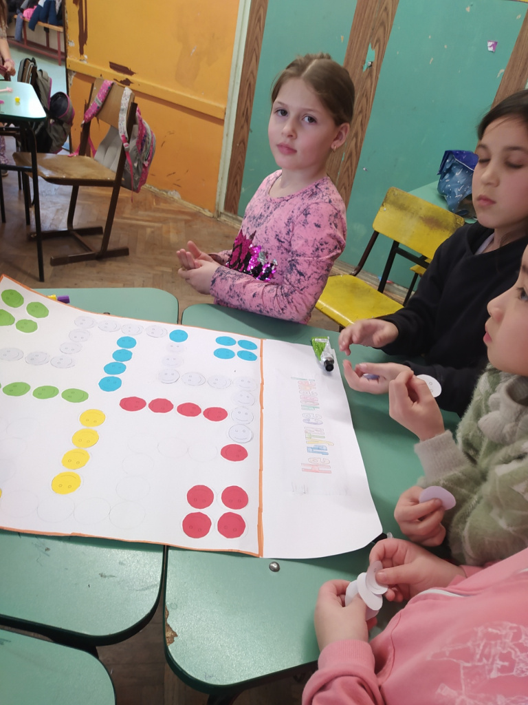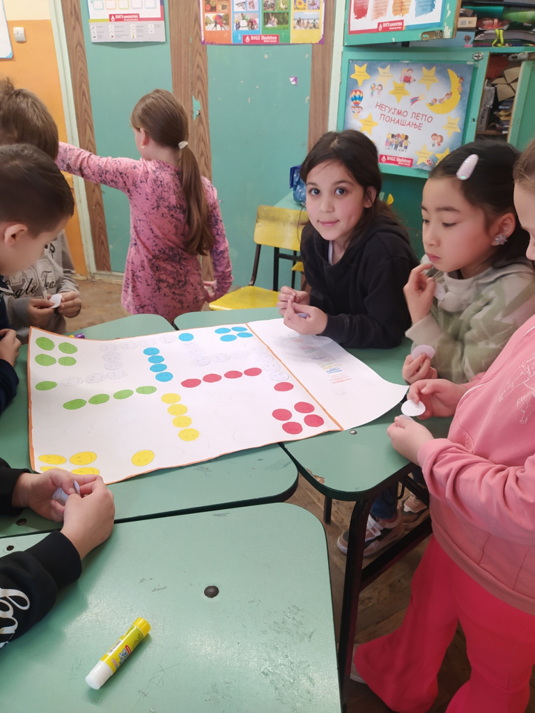 Радионица са педагогом у 1-3 : Сарадња у тиму, је за крајњи резултат имала да направе игру Не љути се човече а потом да одиграју једну партију.
