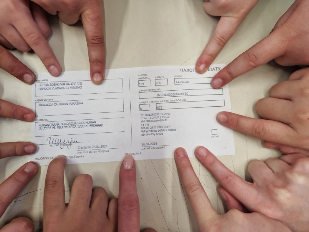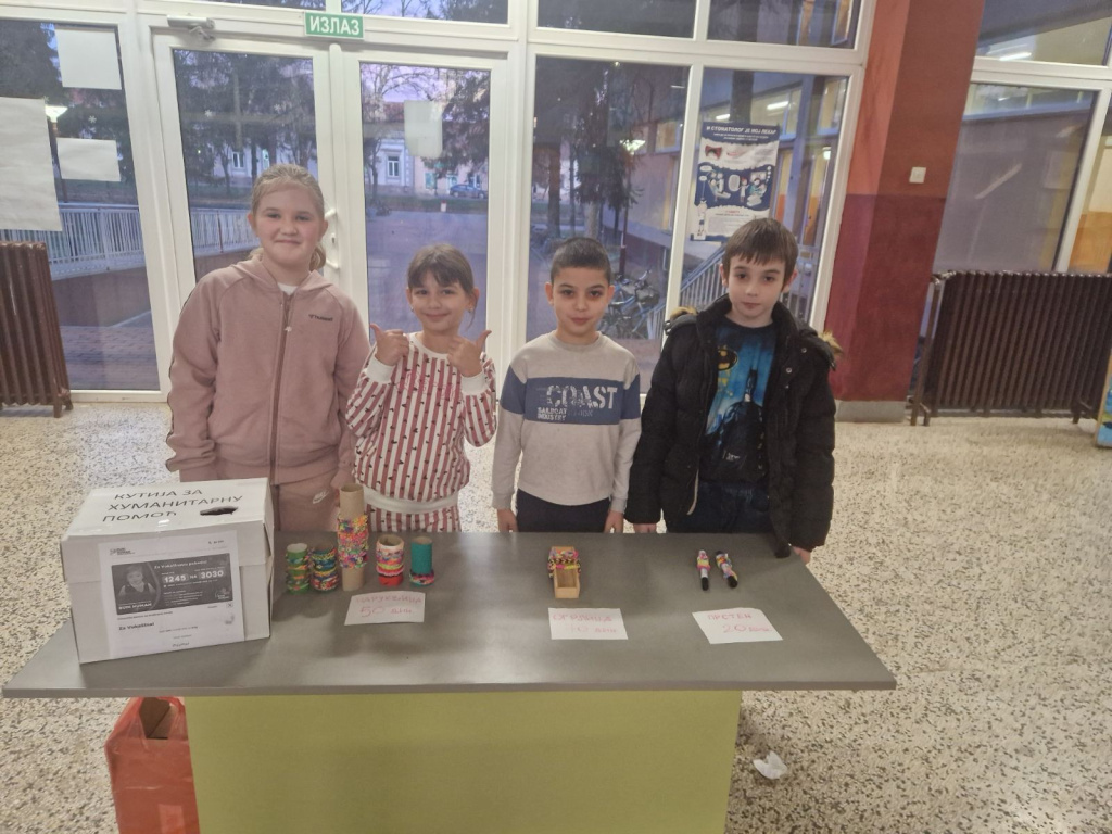 Ученици III3 са учитељицом Иваном Шупут су покренули хуманитарну акцију прикупљања новчаних средстава са малог Вукашина из Зрењанина. Продавали су наруквице, прстење и огрлице које су сами направили и сакупили 13000 динара. Захваљују се свим другарима из школе, запосленима као и родитељима који су учествовали у акцији. Такође, позивају и све људе добре воље да пошаљу поруку са садржајем 975 на 3030 и тиме дају свој допринос - за Вукашиново боље сутра. Нечије мало некоме пуно значи!