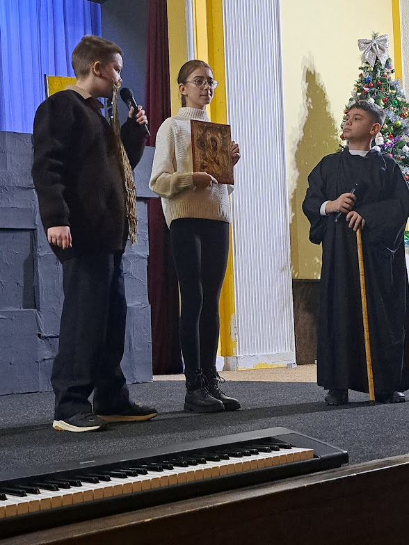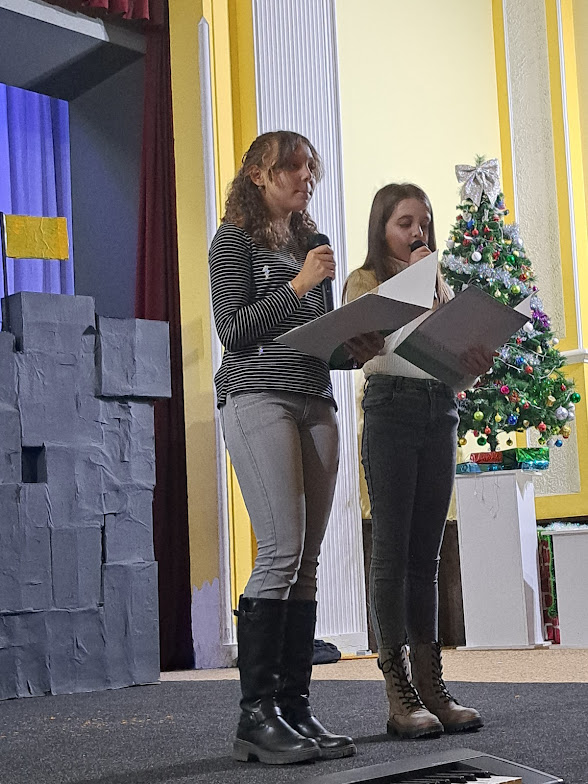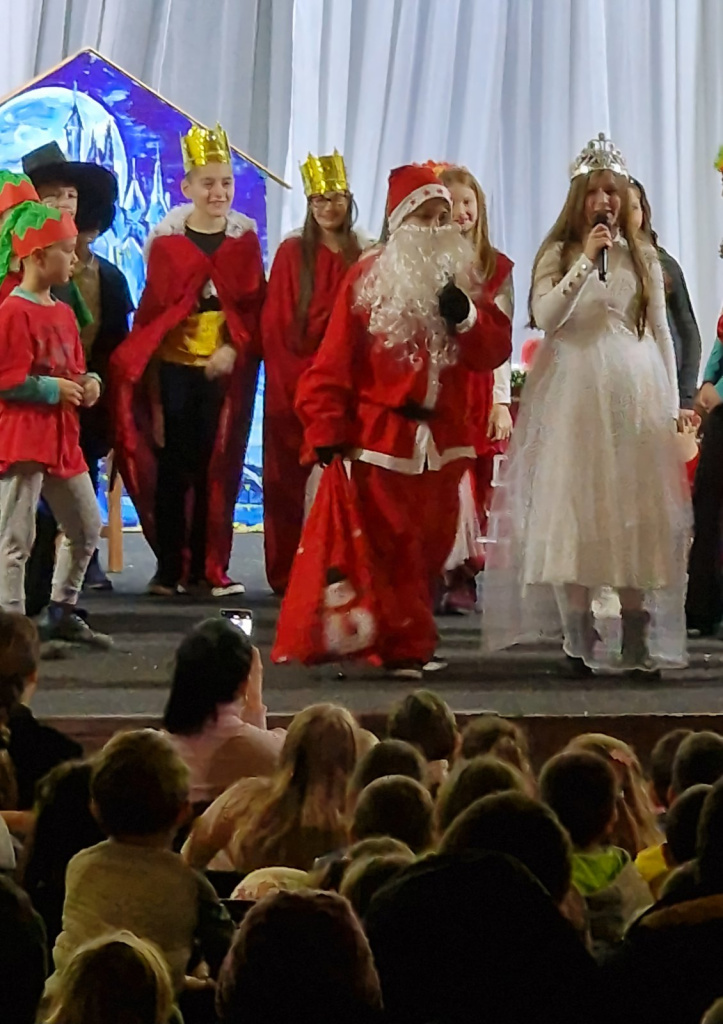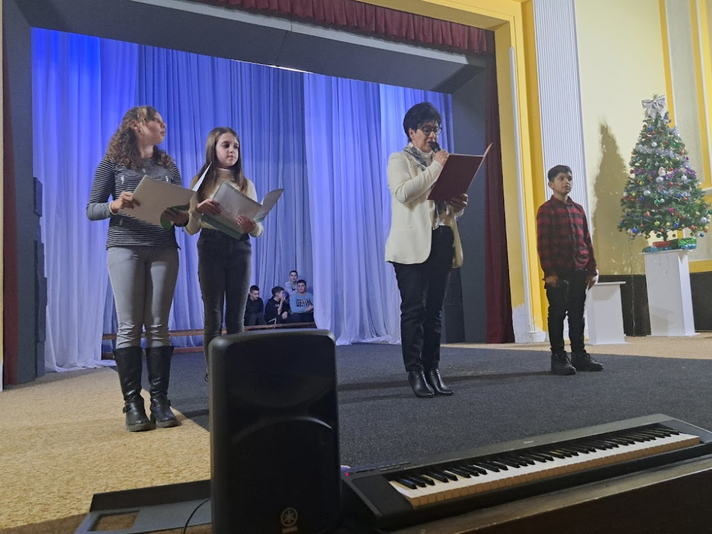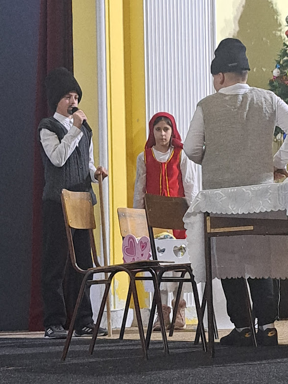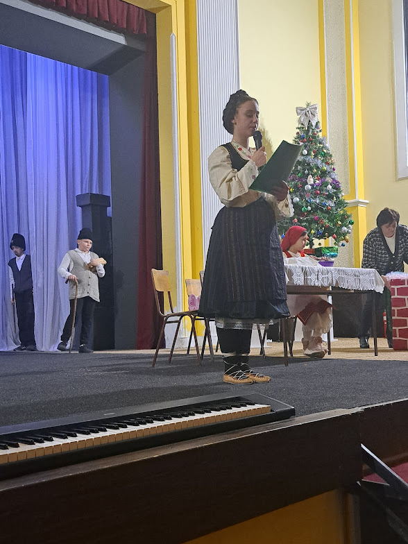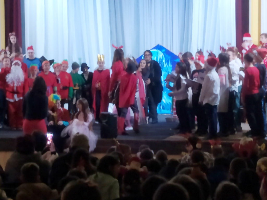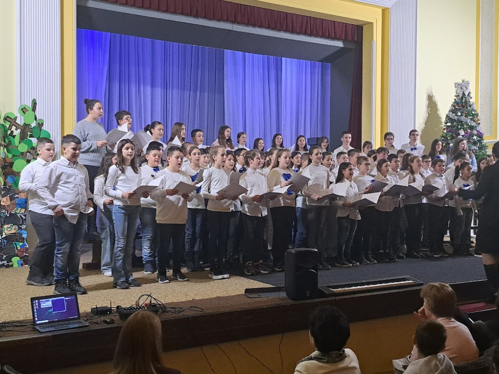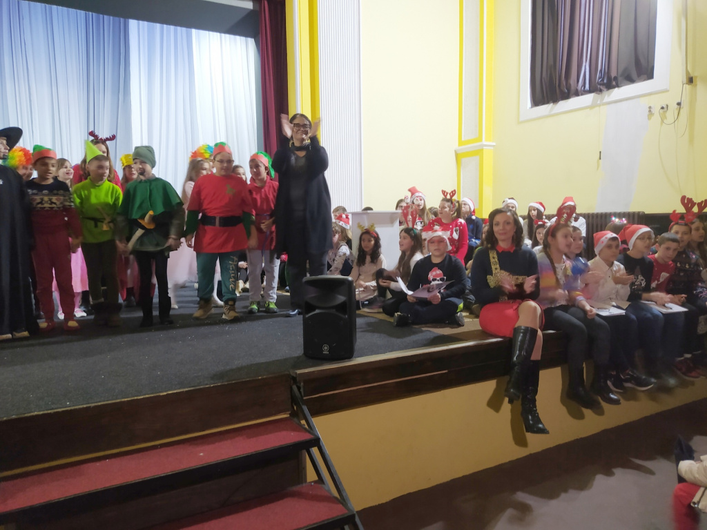 Новогодишња представа ученика 4-1 и хора је измамила осмехе деци а салу испунила радошћу. Уживали су и глумци, и певачи, и публика.