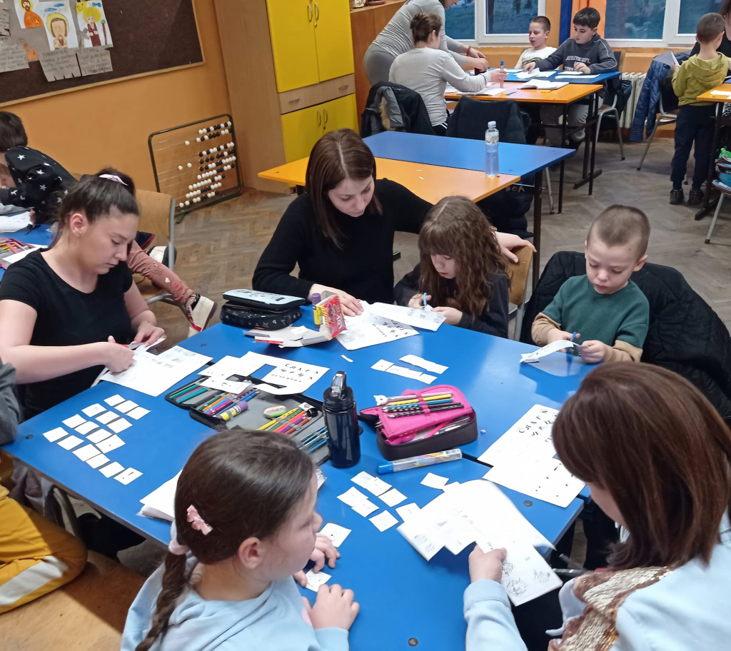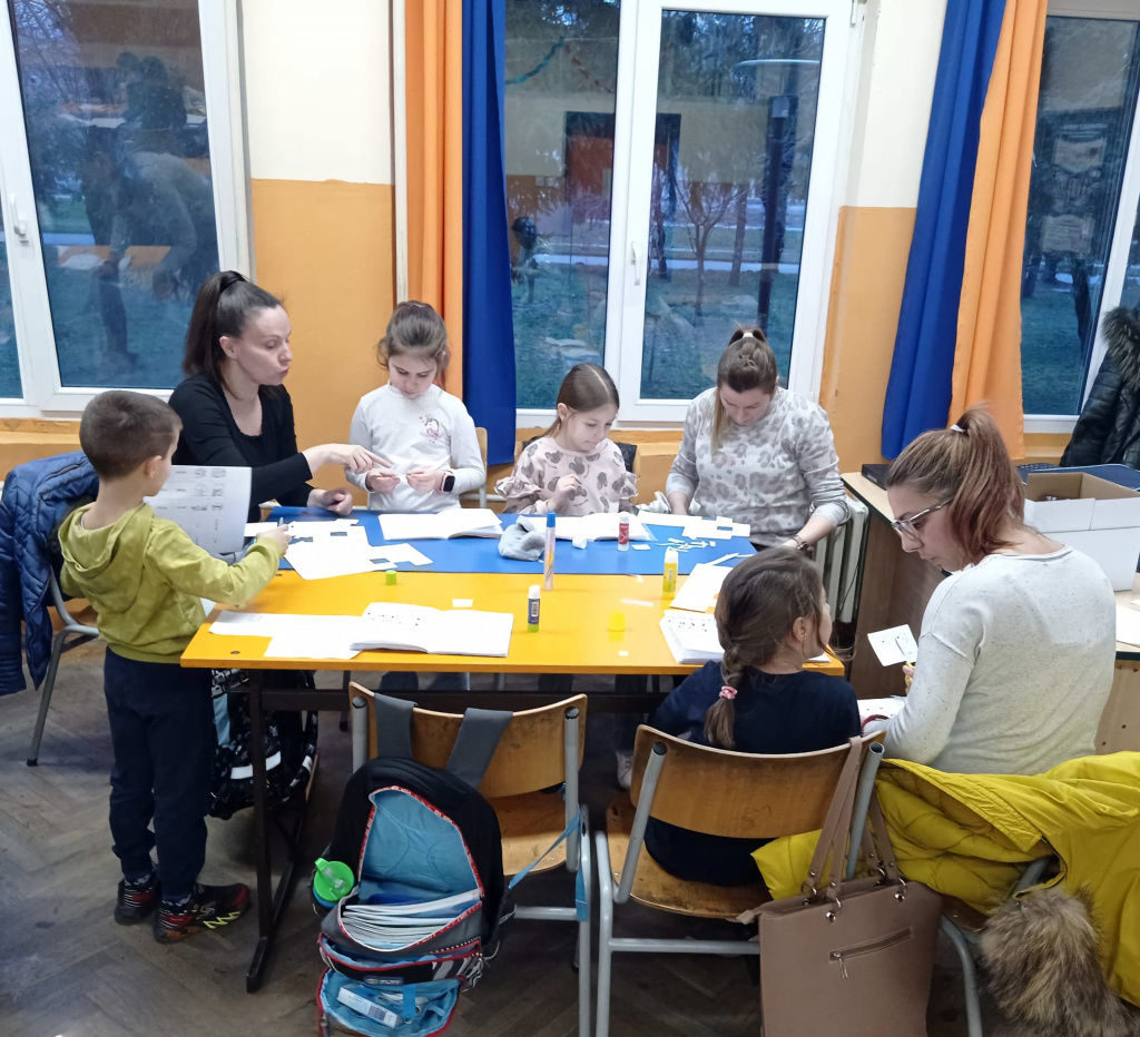Данас, 23.02.2024, код учитељице првог разреда, Оље Булић, одржана је радионица са родитељима. Слагалица реченица.Било је лепо и забавно.