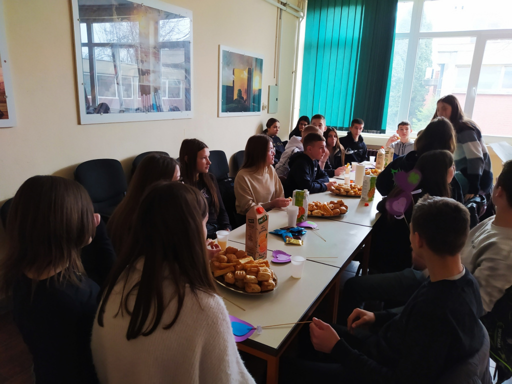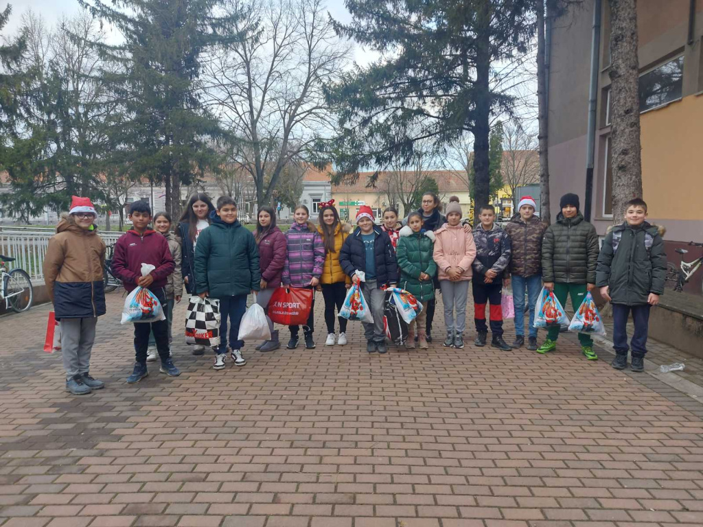 Ученици 6-2, заједно са својим родитељима, обрадовали су своје другаре из разреда. Слаткише, одећу, обућу и школски прибор, однели су им лично, а предали су и пакетиће за браћу од стрица чији је отац преминуо. Задовољство је било обострано, а осмеси на лицу говоре све.