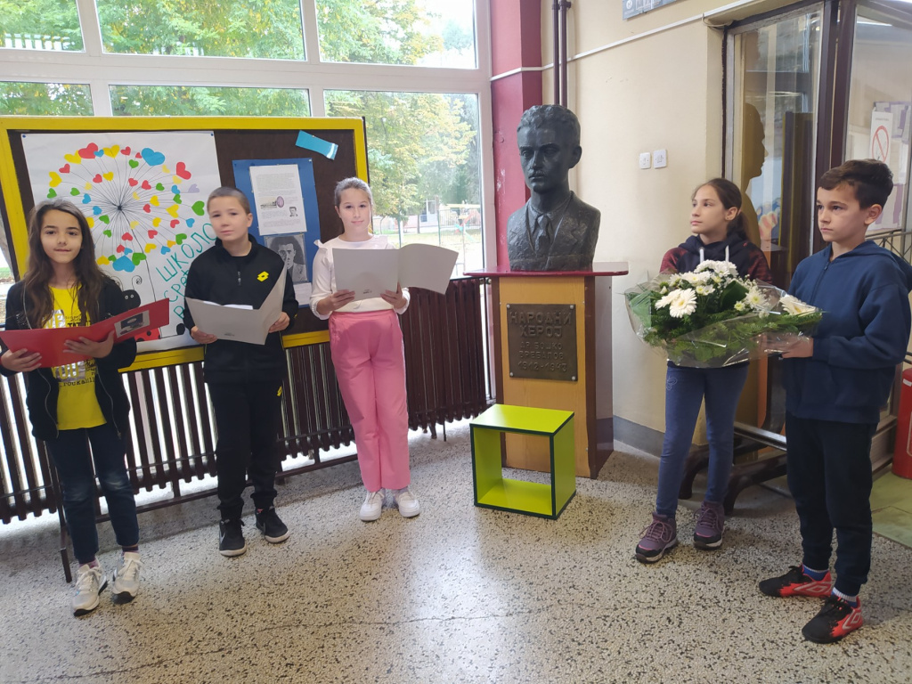Данас је, за ученике 7. и 8. разреда, одржао предавање Борислав Новаковић из Удружења ратних добровољаца 1912—1918. њихових потомака и поштовалаца на тему: Неговање културе сећања. Упознао је ученике са значајем сећања на своје претке, са дешавањима на простору Војводине и Баната за време и после Великог рата. Такође, упознао их је са најзначајнијим историјским личностима који су били савременици Великог рата.